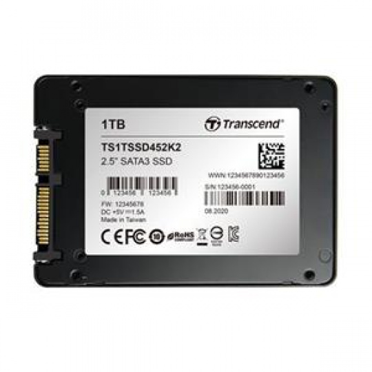 TRANSCEND SSD452K2 1TB Industrial (3K P/E) SSD disk 2.5" SATA3, 3D TLC, Aluminium case, 560MB/s R, 520 MB/W, černý