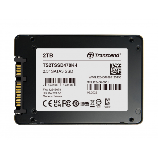 TRANSCEND SSD470K-I 2TB Industrial (3K P/E) SSD disk 2.5" SATA3, 3D TLC, Aluminium case, 560MB/s R, 520 MB/W, černý