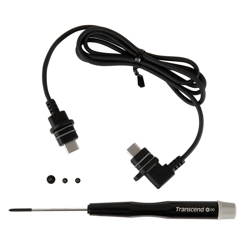 Designed exclusively for Transcend's DrivePro Body 60, this accessory kit includes a 1-meter wearable cable, screws, and a screwdriver for fast assembly. It replaces the cable from the tethered camera to the body camera unit.