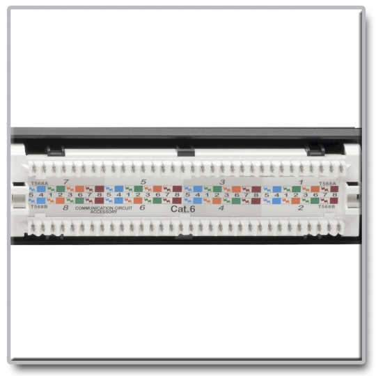 Patch panel pro montáž do racku 1U, 24x Cat6 PoE+ Compliant, 110/Krone, 568A/B, RJ45 Ethernet