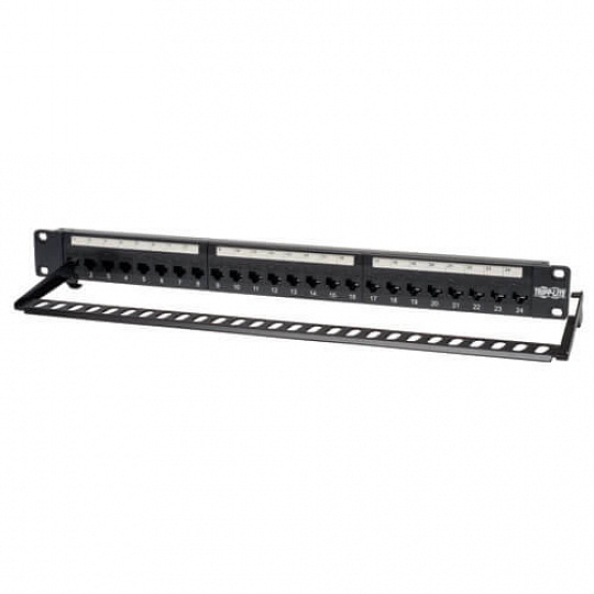 Tripplite Patch panel průchozí pro montáž do racku 1U, 24x Cat6/Cat5, RJ45 Ethernet.