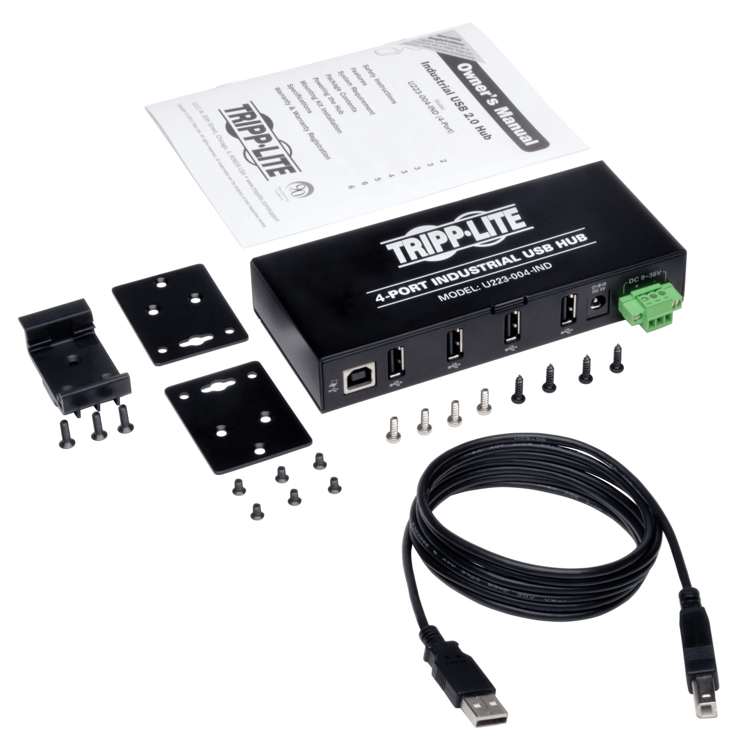 4-Port Industrial-Grade USB 2.0 Hub - 15 kV ESD Immunity, Metal Housing, Mountable
