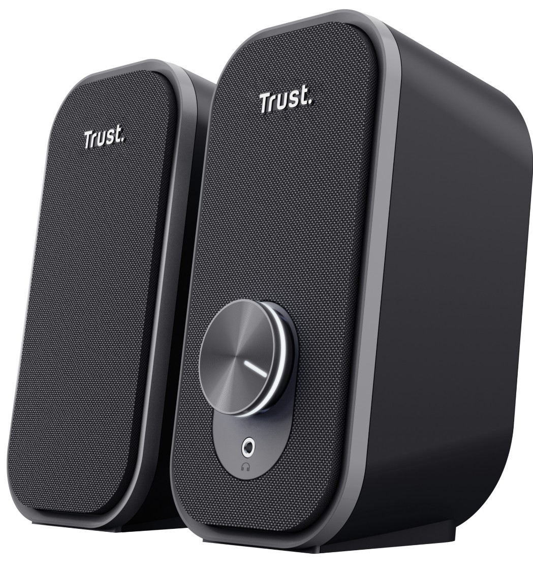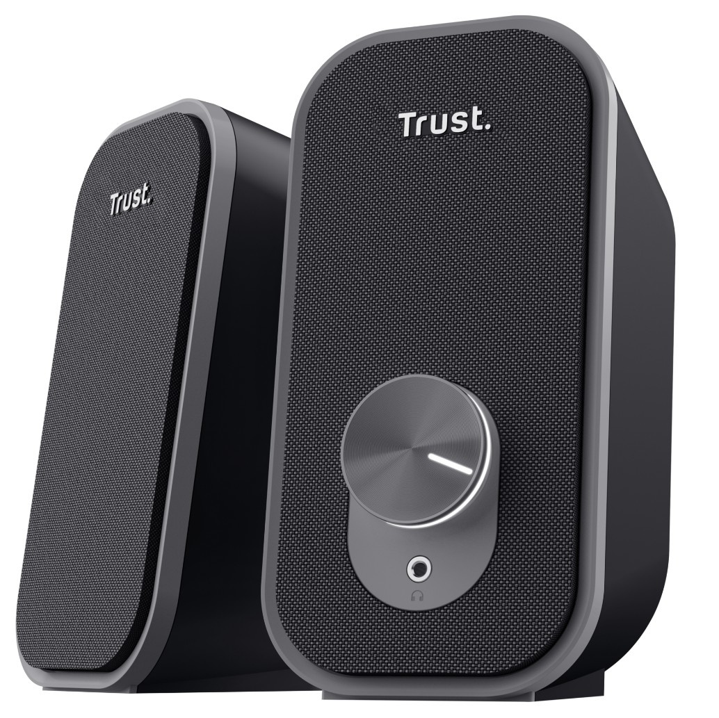 Kompaktní sada reproduktorů s čistým zvukem a látkovým čelem pro čistý, moderní vzhled