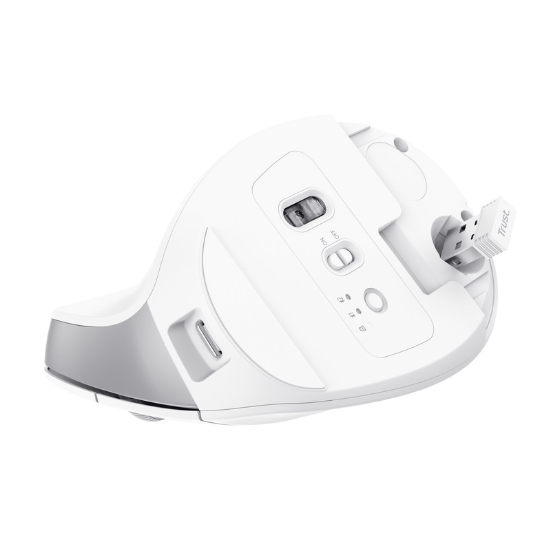 Trust Bayo+/Vertikální/Optická/Pro praváky/2 400 DPI/USB+BT/Bílá