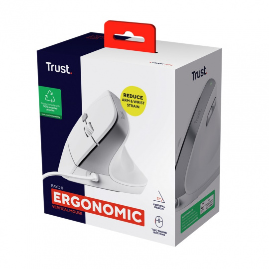 trust4.htmlTrust Bayo II/Vertikální/Optická/Pro praváky/2 400 DPI/Drátová USB/Bílá