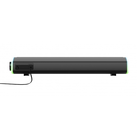 Trust GXT 620 AXON herní soundbar RGB s osvětlením duhovými vlnami a snadno přístupným ovládáním hlasitosti.