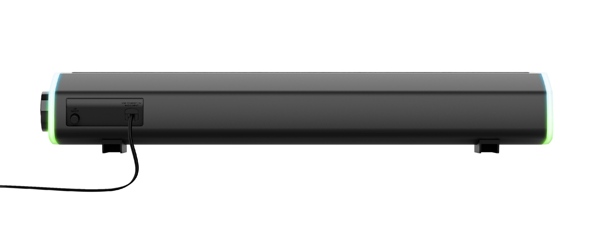 Trust GXT 620 AXON herní soundbar RGB s osvětlením duhovými vlnami a snadno přístupným ovládáním hlasitosti.