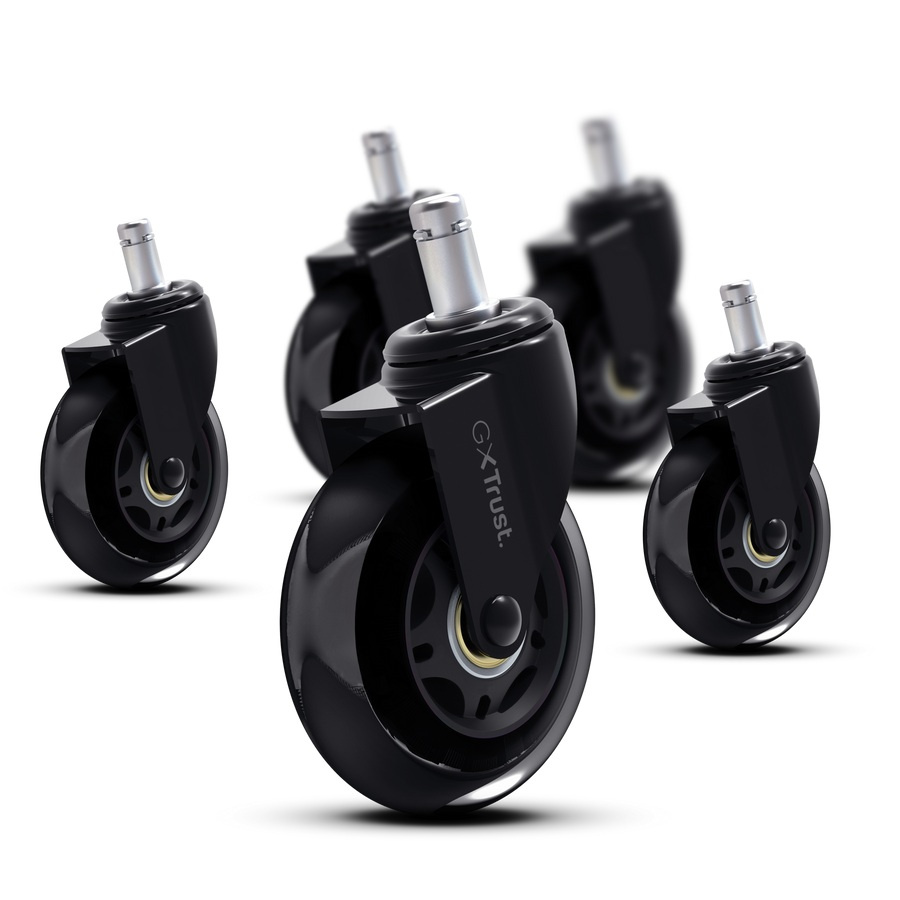 Trust GXT702 gelová kolečka gelová kolečka židle pro hladký a tichý pohyb Vylepšete svou židli tímto balením 5 elegantních a stylových 75mm gelových koleček. Díky univerzálnímu 11mm uchycení, hladkému a tichému chodu, které nepoškrábe ani nezanechá stopy na podlaze, a nosnosti až 300 kg, jsou dokonalým prémiovým vylepš... více