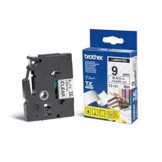 Originální kazeta s laminovanou páskou TZe-121 kompatibilní s širokou řadou tiskáren Brother P-touch je zvláště všestranná díky své snadno čitelné černé barvě na průsvitném podkladu - ideální pro domácnost, kancelář a další pracoviště.