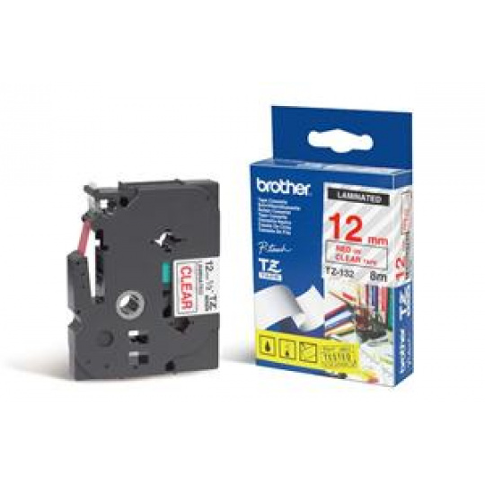 Originální kazeta s laminovanou páskou TZe-132 kompatibilní s širokou řadou tiskáren Brother P-touch je zvláště všestranná díky své snadno čitelné červené barvě na průsvitném podkladu - ideální pro domácnost, kancelář a další pracoviště.
