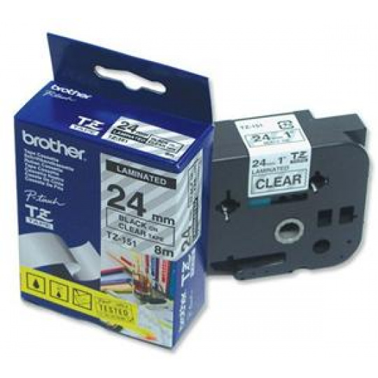 Originální kazeta s páskou Brother TZe-151 - černý tisk na průsvitné, šířka 24 mm