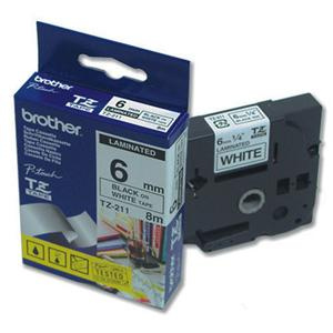 Originální kazeta s páskou Brother TZe-211 - černý tisk na bílé, šířka 6 mm