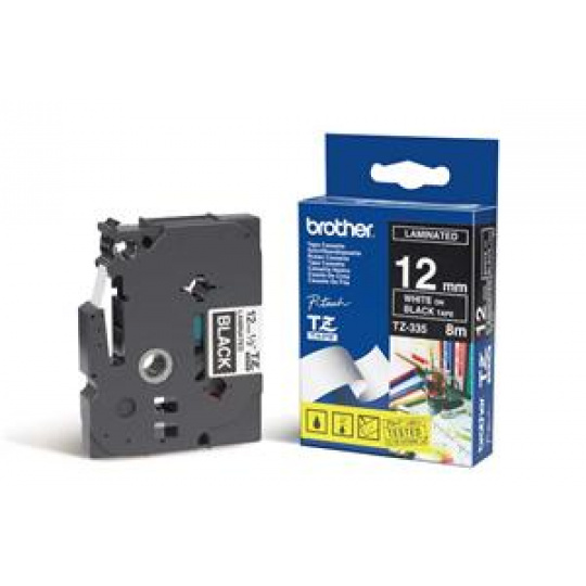 Originální páska Brother TZe335 pro tisk štítků – bílý tisk na černém podkladu, šířka 12 mm