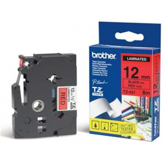 Originální kazeta s laminovanou páskou TZe-431 kompatibilní s širokou řadou tiskáren Brother P-touch je zvláště všestranná díky své snadno čitelné černé a červené barvě - ideální pro domácnost, kancelář a další pracoviště.