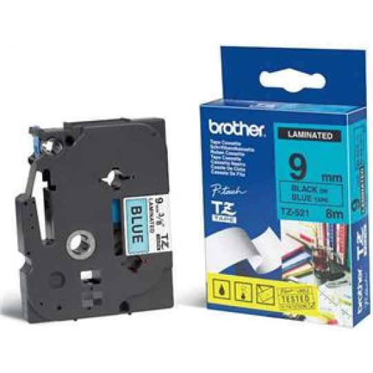 Originální kazeta s páskou Brother TZe-521 - černý tisk na modré, šířka 9 mm