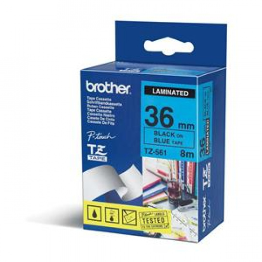 Originální kazeta s laminovanou páskou TZe-561 kompatibilní s širokou řadou tiskáren Brother P-touch je zvláště všestranná díky své snadno čitelné černé a modré barvě - ideální pro domácnost, kancelář a další pracoviště.