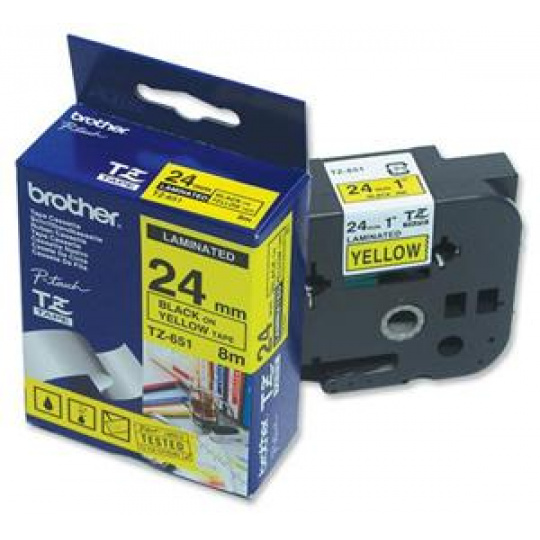 Originální kazeta s laminovanou páskou TZe-651 kompatibilní s širokou řadou tiskáren Brother P-touch je zvláště všestranná díky své snadno čitelné černé a žluté barvě - ideální pro domácnost, kancelář a další pracoviště.