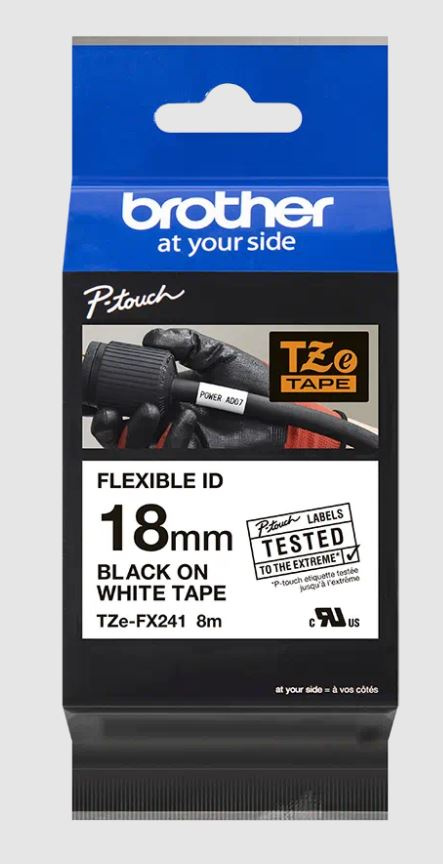 Ideální pro vytváření identifikačních štítků pro kabely, vodiče, PVC trubky nebo jiné válcovité tvary. Speciální lepidlo pásky Brother TZe-FX241 s černým tiskem na bílém podkladu zajišťuje, že vaše důležité štítky budou mít dlouhou životnost. Kompatibilní s tiskárnami štítků P-touch, které mají logo TZ nebo TZe na krytu kazety s páskou.
