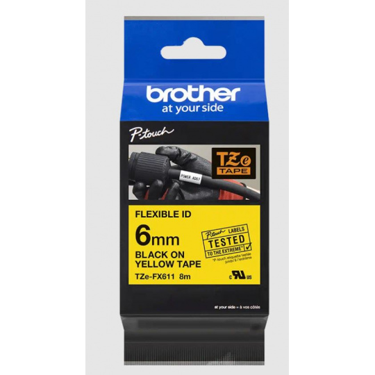 Ideální pro vytváření identifikačních štítků pro kabely, vodiče, PVC trubky nebo jiné válcovité tvary. Speciální lepidlo pásky Brother TZe-FX611 s černým tiskem na žlutém podkladu zajišťuje, že vaše důležité štítky budou mít dlouhou životnost. Kompatibilní s tiskárnami štítků P-touch, které mají logo TZ nebo TZe na krytu kazety s páskou.