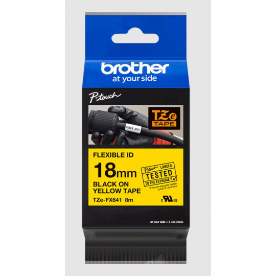 Ideální pro vytváření identifikačních štítků pro kabely, vodiče, PVC trubky nebo jiné válcovité tvary. Speciální lepidlo pásky Brother TZe-FX641 s černým tiskem na žlutém podkladu zajišťuje, že vaše důležité štítky budou mít dlouhou životnost. Kompatibilní s tiskárnami štítků P-touch, které mají logo TZ nebo TZe na krytu kazety s páskou.