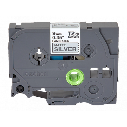 TZE-M921 - černý tisk/matně stříbrný podklad, 9mm
