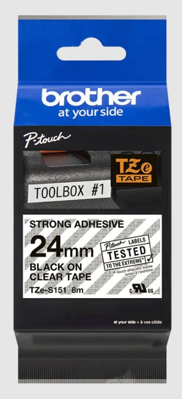 Originální kazeta s laminovanou páskou TZe-S151 kompatibilní s širokou řadou tiskáren Brother P-touch je zvláště všestranná díky své snadno čitelné černé a průsvitné barvě - ideální pro domácnost domácnosti, kancelář a další pracoviště.