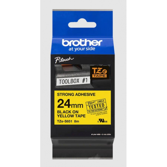 Originální kazeta s laminovanou páskou TZe-S651 kompatibilní s širokou řadou tiskáren Brother P-touch je zvláště všestranná díky své snadno čitelné černé a žluté barvě - ideální pro domácnost domácnosti, kancelář a další pracoviště.