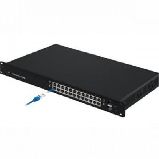 Gigabitový L3 PoE switch Ubiquiti EdgeSwitch ES-24-250W v 19" rackmount provedení s maximálním výkonem PoE napájení 250W. Managovatelný switch s 24 gigabit metalickými porty + 2 gigabitové SFP porty a celkovou propustností 26Gbps. PoE na každém portu je možné nastavit jako aktivní PoE 802.3af/at nebo pasivně 24V s maximálním výkonem 34W/port.