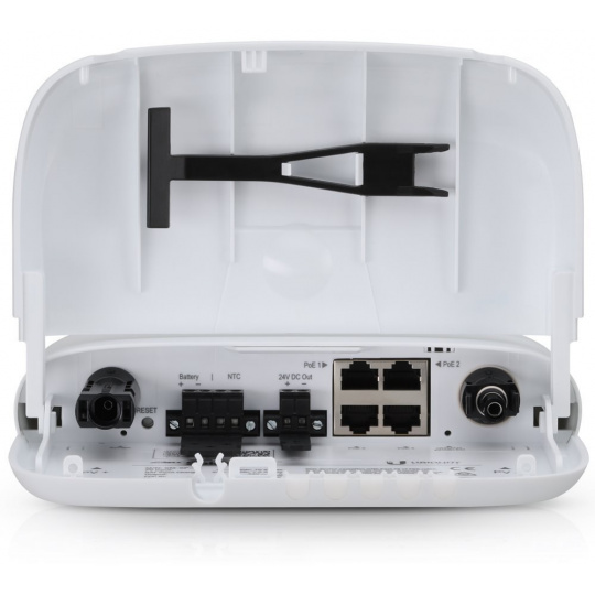 * s vestavěným switchem (4 x RJ-45 PoE 10/100 Mb/s) a jedním DC výstupem poskytujícím napájení až 40 W