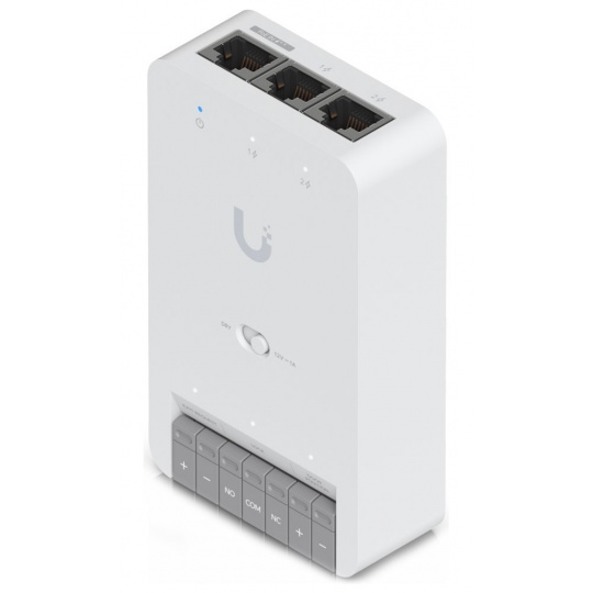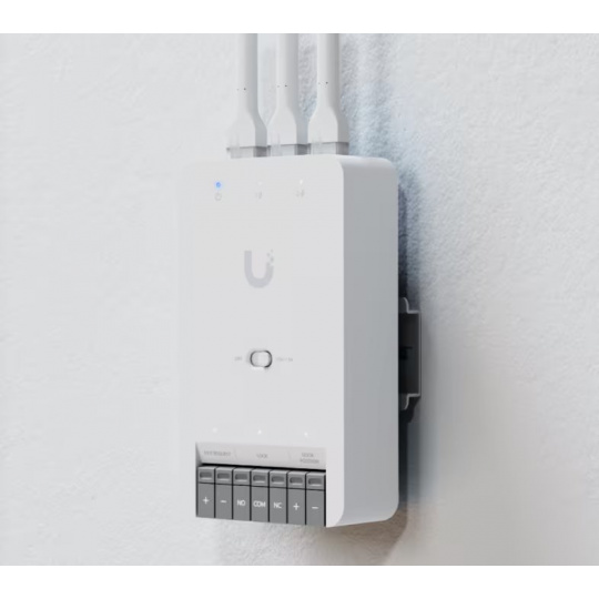 Kompaktní rozbočovač řízení přístupu pro jedny dveře. Umožňuje připojení až dvou přístupových čteček UniFi nebo kamer Protect Camera.