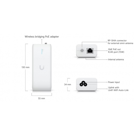 Zisk antény: 5 GHz - Interní anténa: 5 dBi / Externí všesměrová anténa: 4 dBi