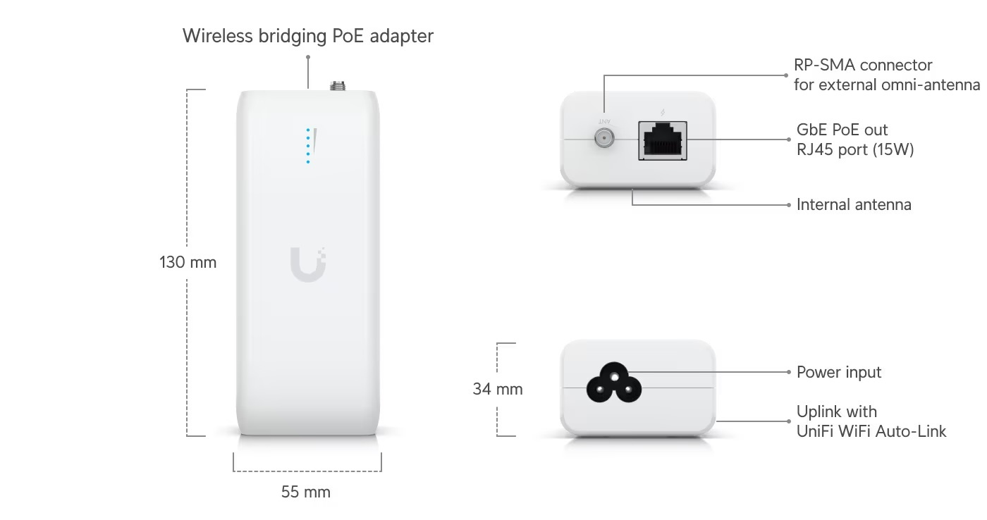 Zisk antény: 5 GHz - Interní anténa: 5 dBi / Externí všesměrová anténa: 4 dBi