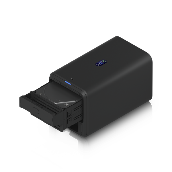 * UniFi Network Attached Storage se dvěma 3.5" HDD pozicemi nabízí výkonné a přitom prostorově úsporné řešení pro ukládání dat.