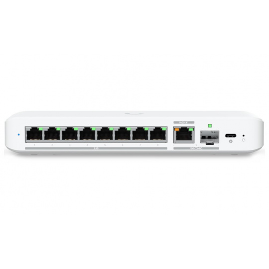 Porty: 8× 2,5 GbE RJ-45, 1× 10G combo RJ-45 PoE+/SFP+, 1× USB-C (napájení)