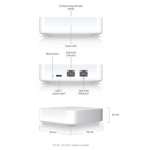 UniFi Gateway Lite je novinkou od společnosti Ubiquiti. UniFi Gateway Lite je tichá, kompaktní, výkonná brána UniFi s kompletní sadou pokročilých funkcí routování a zabezpečení. Zařízení je vybaveno 1x Gigabit LAN konektorem a 1x Gigabit WAN konektorem. Tento produkt se skvěle hodí pro malé firmy, pro které vytváří skvělý balanc mezi cenou a výkonem zařízení. Pro základní správu zařízení je možné využít smartphone s Bluetooth, komplexní správa probíhá stejně jako u jiných UniFi zařízeních skrze HW/SW kontroler. Unifi Gateway Lite je až 10X rychlejší oproti USG a podporuje různé druhy VPN, stejně tak IPv6, DHCP server a mnohem více.