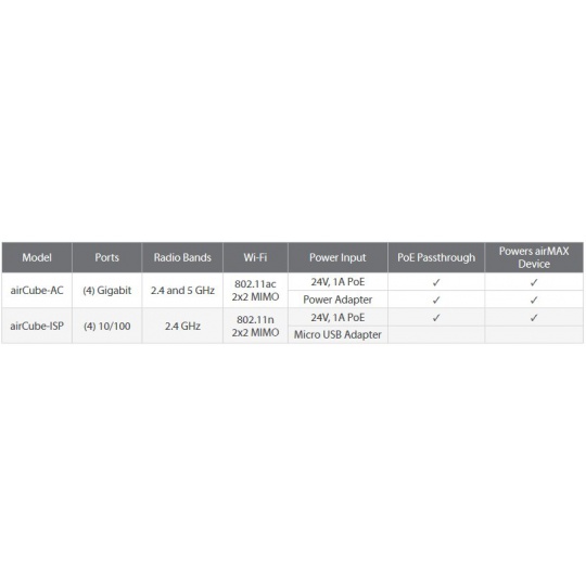 Napájení routeru je možné řešit jak přes 24V napájecí adaptér, který je součástí balení, tak i pomocí 24V pasivního injektoru zapojeného do portu LAN, čímž bude možné napájet i venkovní jednotku jako např.: Loco, PowerBeam, NanoBeam a jiné klientské jednotky.