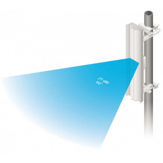 Dvoupolarizační sektorová anténa se ziskem 21dBi, vyzařovacím úhlem 60° vhodná pro jednotku R5AC-Lite.