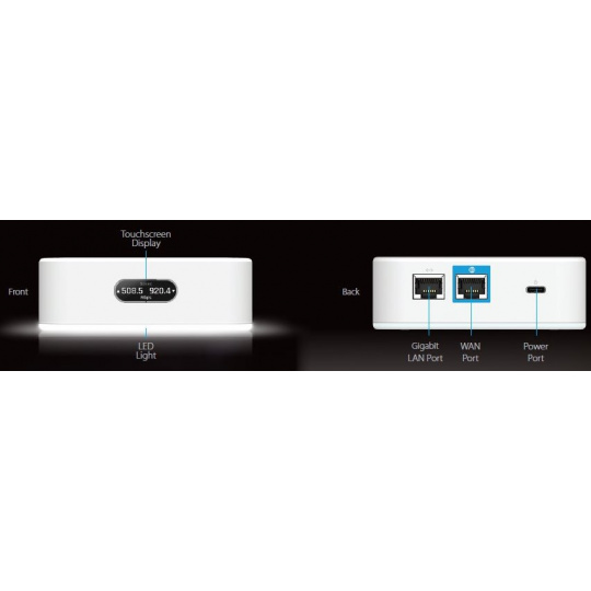 AFi-INS-R je samotný router AmpliFi, který se hodí k pokrytí menších prostor. Na přední straně je informační LCD displej, na zadní straně pak 1x WAN a 1x LAN port (oba 10/100/1000Mbps) a USB-C konektor pro připojení napájení. Elegantní a jednoduchý design se hodí do trendů moderního bydlení.
