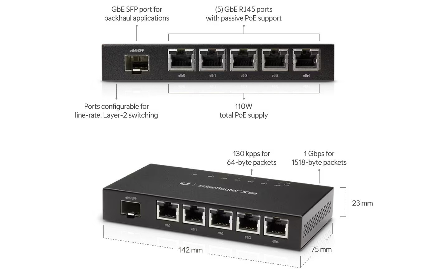 Ubiquiti EdgeRouter X SFP, 5x GLAN, 1x SFP, 5x PoE out