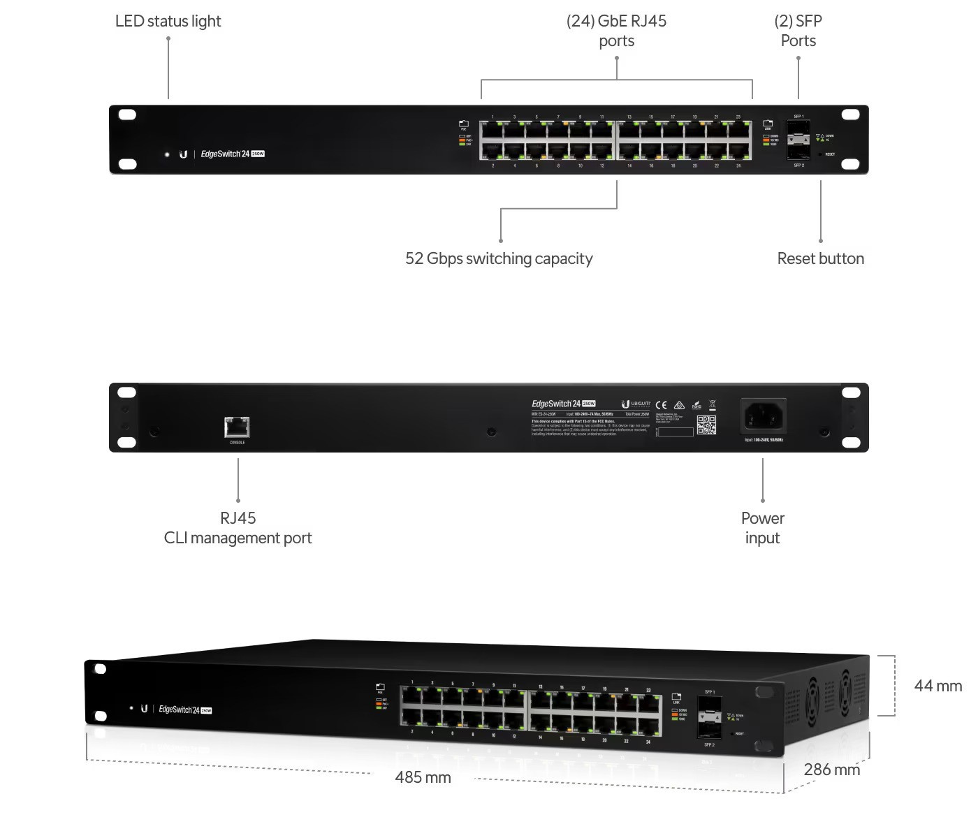 Ubiquiti EdgeSwitch 24xGb 2xSFP PoE+ ES-24-250W