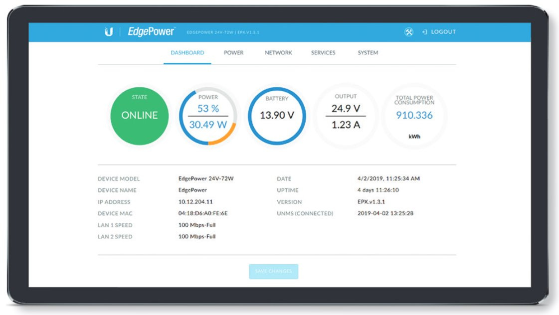 EdgePower je možné spravovat přes aplikaci UNMS nebo ve vlastním webovém rozhraní. Samozřejmostí je podpora protokolu SNMP.