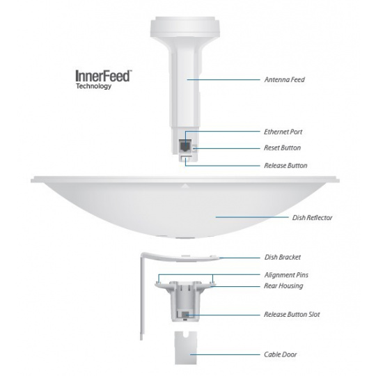 InnerFeed™ technologie integruje rádiovou část do zářiče od antény čímž odpadá potenciální ztráta na RF kabelu.