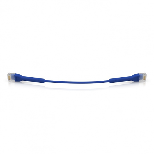 Ethernetový patch kabel UniFi UC-PATCH-RJ45 v modré barvě je s délkou 22cm ideální na propojení (nejen) UniFi zařízení v racku v bezprostřední blízkosti.