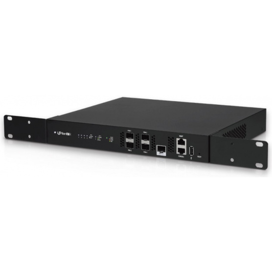 UFiber OLT 4 nabízí 4 GPON porty a podporuje až 128 klientů na port, celkově až 512 souběžných klientů s fyzickými linkami do vzdálenosti 20km.