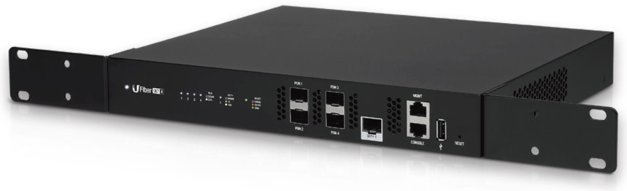 UFiber OLT 4 nabízí 4 GPON porty a podporuje až 128 klientů na port, celkově až 512 souběžných klientů s fyzickými linkami do vzdálenosti 20km.