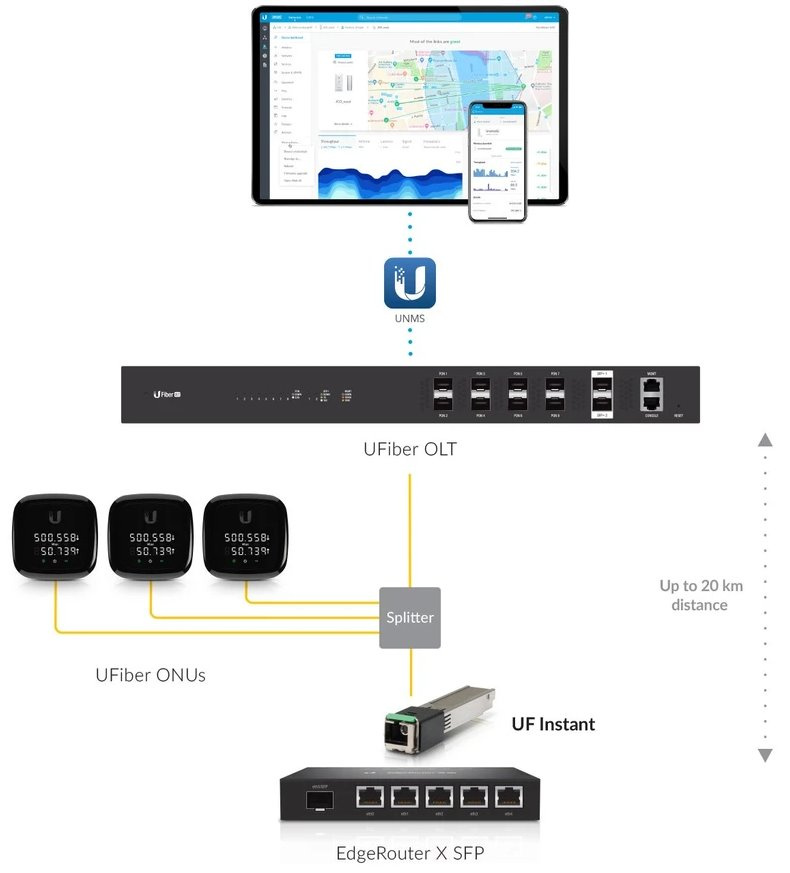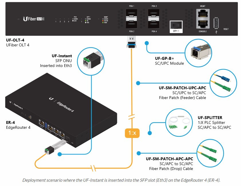 UF-Instant je GPON SFP modul s jedním SC konektorem a je určený do Ubiquiti jednotek řady EdgeSwitch, EdgeRouter, UniFi Switch a USG nebo s produkty UF-AE a F-POE-G2.