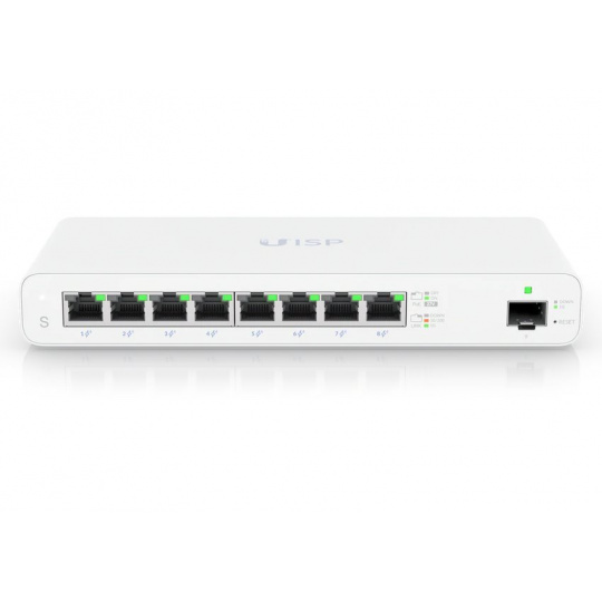 UISP Switch je osazen osmi GbE PoE RJ-45 a jedním GbE SFP slotem pro uplink.