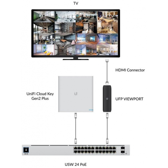 UniFi Protect ViewPort je zařízení umožňující sledování živého obrazu až 16ti kamer z UniFi Video Protect přes HDMI na vašem monitoru a to až ve 4K rozlišení.