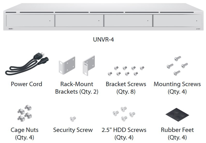 UniFi NVR je Enterprise zařízení, na kterém je předinstalovaný software UniFi Protect a je vybaveno 4 šachtami, do kterých lze umístit jak 2,5" tak 3,5" disky.