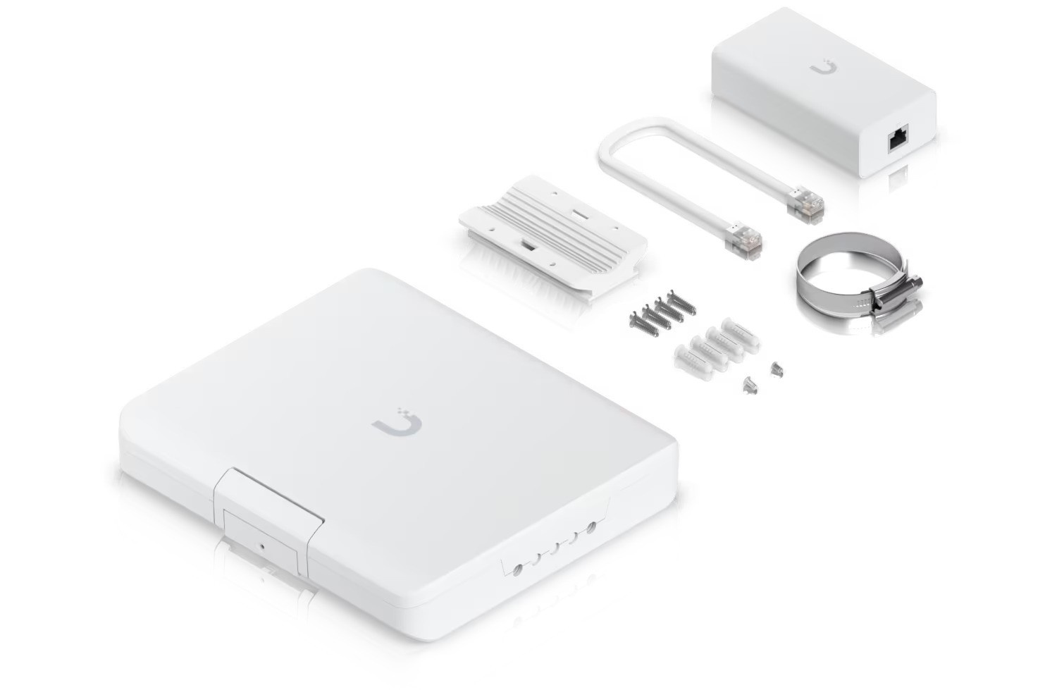 USW-Flex-Utility je venkovní krabice odolná proti povětrnostním vlivům speciálně navržená pro použití s UniFi Switch Flex (USW-Flex) zařízením.